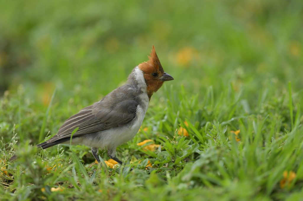 นกวัยอ่อน (Juvenile) : หลังมีสีน้ำตาล ใบหน้า คอ และหงอนที่ยังหลงเหลืออยู่มีสีน้ำตาลอมส้ม
